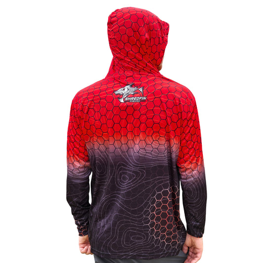 ShredFin Contourz HexCast Hooded Performance Shirt | Red/Black Fade