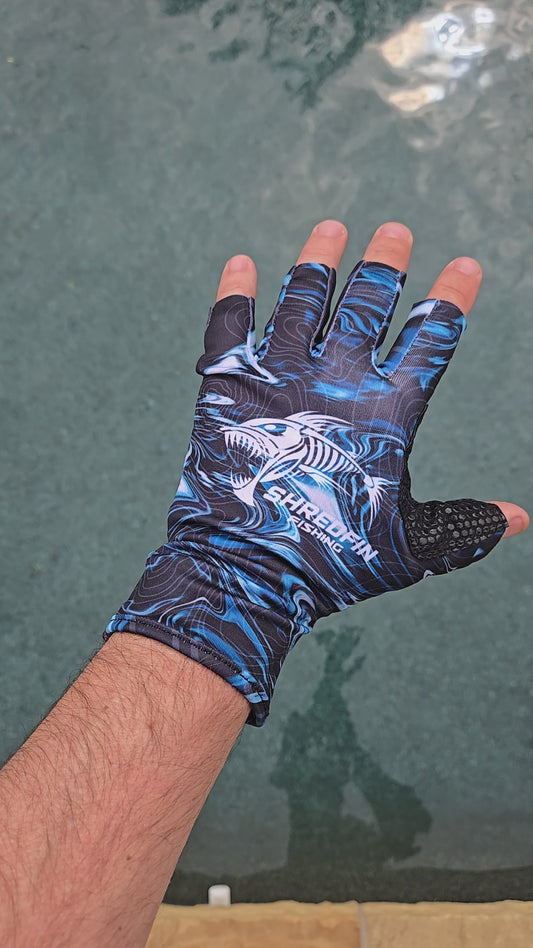 ShredFin Fingerless Fishing Gloves | StormSurge | Blue Harbor Swirl